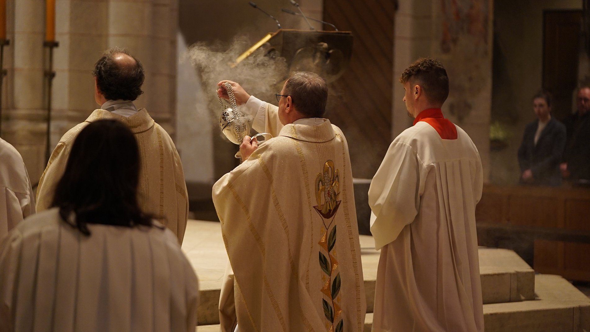 Der Gottesdienst am Gründonnerstag war von weiteren liturgischen Riten geprägt. Im Anschluss an das Schlussgebet wurden die geweihten Hostien in einer Prozession aus dem Tabernakel in eine Nebenkapelle gebracht und der Altarschmuck wurde entfernt. Orgel und Glocken schweigen nun bis zur Feier der Auferstehung in der Osternacht.
