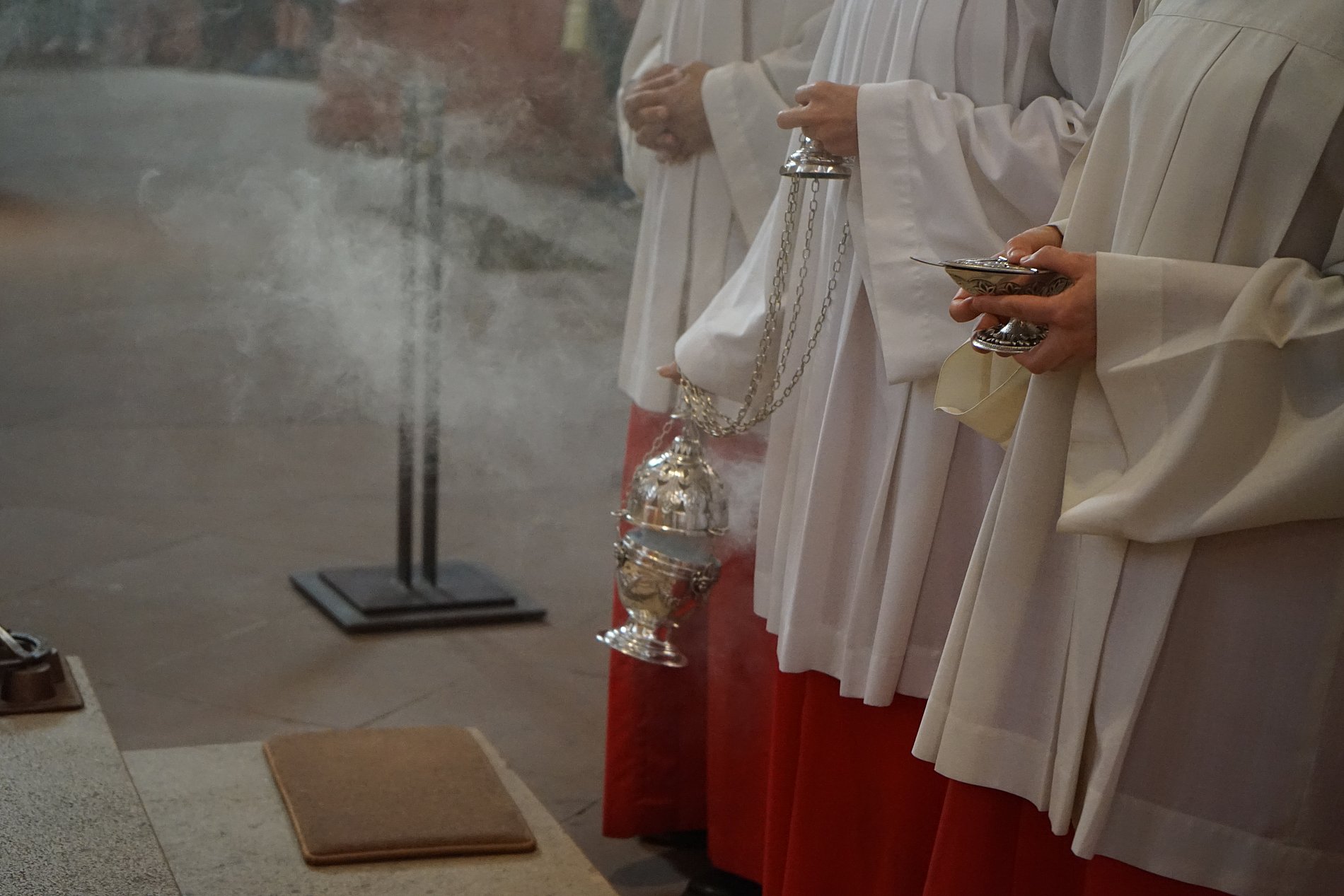 Dann finde ich es auch gut, dass wir heute Liturgie miteinander feiern, nicht nur ein Fest auf dem Domplatz. Vieles von dem, was ich tue, hat aktuell mit Strukturen und Organisation von Kirche zu tun. Doch das alles sind ja eigentlich nur Hilfsmittel, Rahmenbedingungen. Es geht um das Evangelium, den Glauben an Gott und Jesus Christus. Und darum, diesen Glauben konkret zu leben und zu feiern. Das droht gerade in den Verwaltungen und synodalen Strukturen manchmal in Vergessenheit zu geraten. Deshalb ist es hilfreich und wichtig, sich das immer wieder vor Augen zu führen. Und daran erinnert uns, erinnert mich auch jeder Gottesdienst.