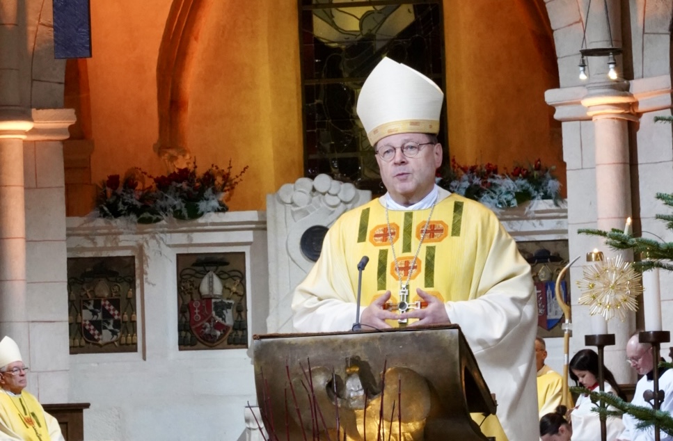 Jesus, das Kind im Stall und der Sohn Gottes verändere alles. Denen, die in Angst und Schrecken leben müssen und keinen Ausweg sehen, gebe er Zukunftsmut und nehme ihnen die Angst. Er werde nicht müde und matt, sondern sei ein ewiger Gott. All jenen, die sich in ihrem Schmerz und ihrer Trauer übersehen oder allein gelassen fühlten, springe er tröstend bei und zeige ihnen, dass er sie nicht vergesse. Jesus sei Gottes „schönstes, tiefstes und letztes Wort. Er stehe für eine Welt ein, in der es gerecht und menschlich zugehe, weil Menschen aufeinander achteten und füreinander sorgten, wissend, darum, dass Gott ganz nahe sei. „Alle, die ihn beim Wort nehmen, sind auf dem besten Weg, Kinder Gottes zu werden. Ehrenwort!“, betonte der Bischof von Limburg.