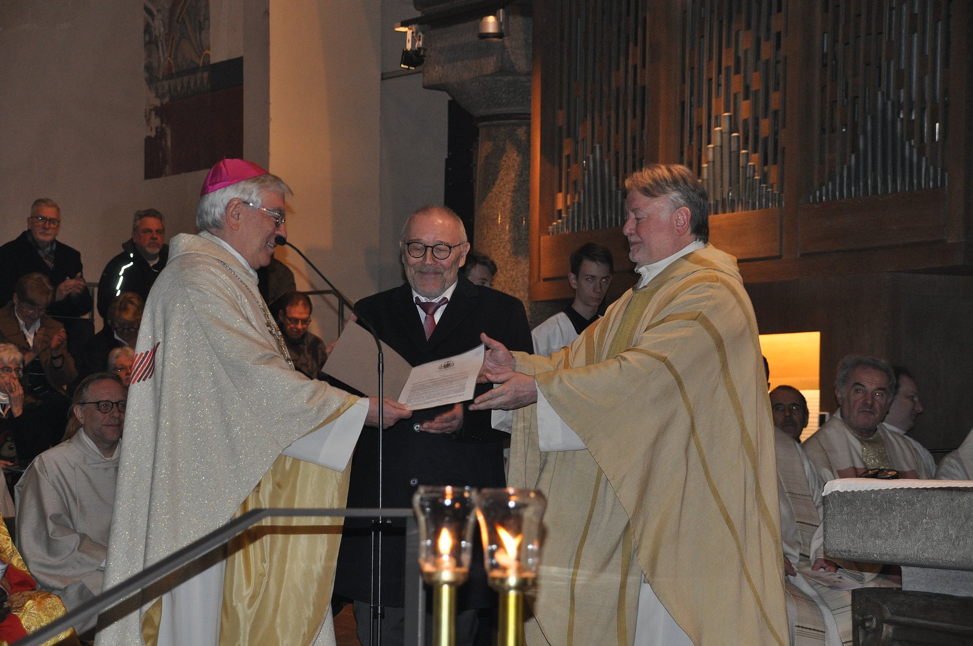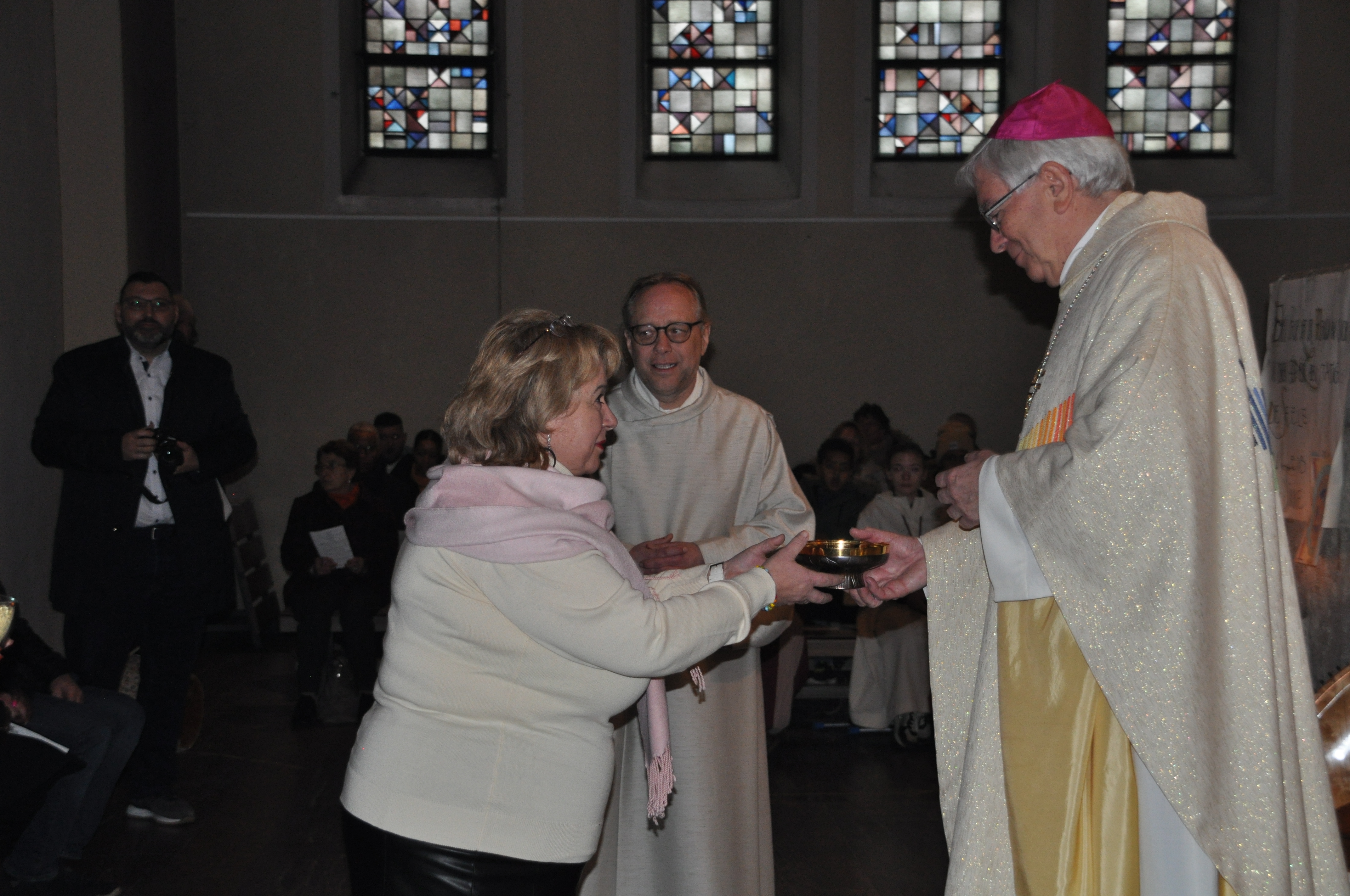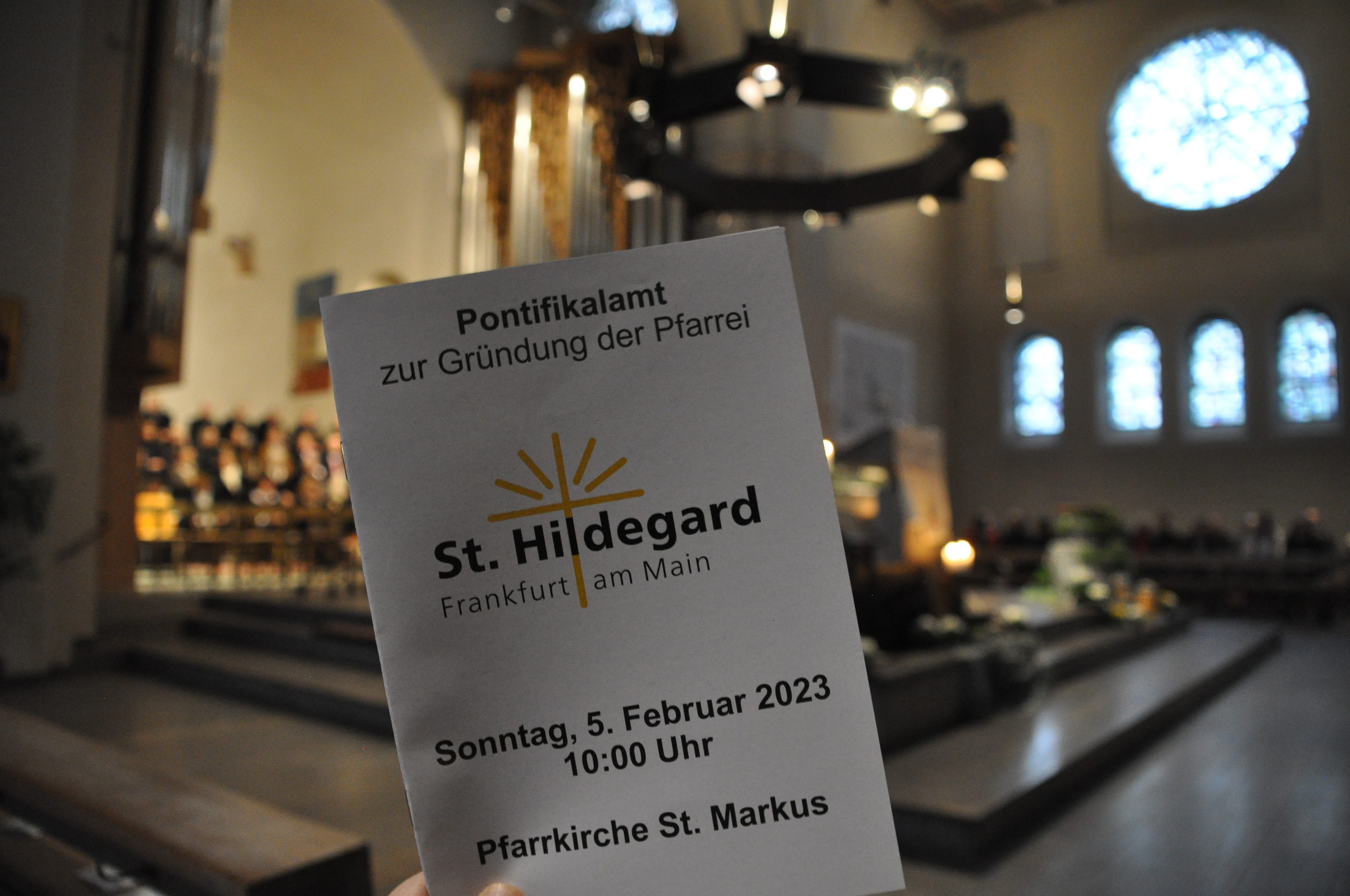 Der Weihbischof fuhr fort, er glaube, dass die Vielfalt der Aktivitäten, der Verantwortlichkeiten und der Sensibilität in der neuen Pfarrei immer wieder Anknüpfungspunkte bei Hildegard finden werden. „Ich habe den Eindruck, dass Sie durch die Namensgebung und durch Ihr Handeln Leben und Wirken Hildegards in dieser Stadt lebendig werden lassen. In dieser krisengeprägten Zeit des Angriffskrieges gegen die Ukraine, der traumatischen Folgen der sexualisierten Gewalt auch in der Kirche, um nur zwei zu benennen, ist es bedeutsam, auf diese Stadt Frankfurt und gerade auf diese neue Pfarrei zu schauen – ihre Fragen und Herausforderungen – und ebenso Ihre Antworten.“ Er wünschte den Verantwortlichen, Aktiven und Gläubigen, dass sie dafür immer wieder Inspiration von ihrer heiligen Pfarrpatronin erhalten mögen.