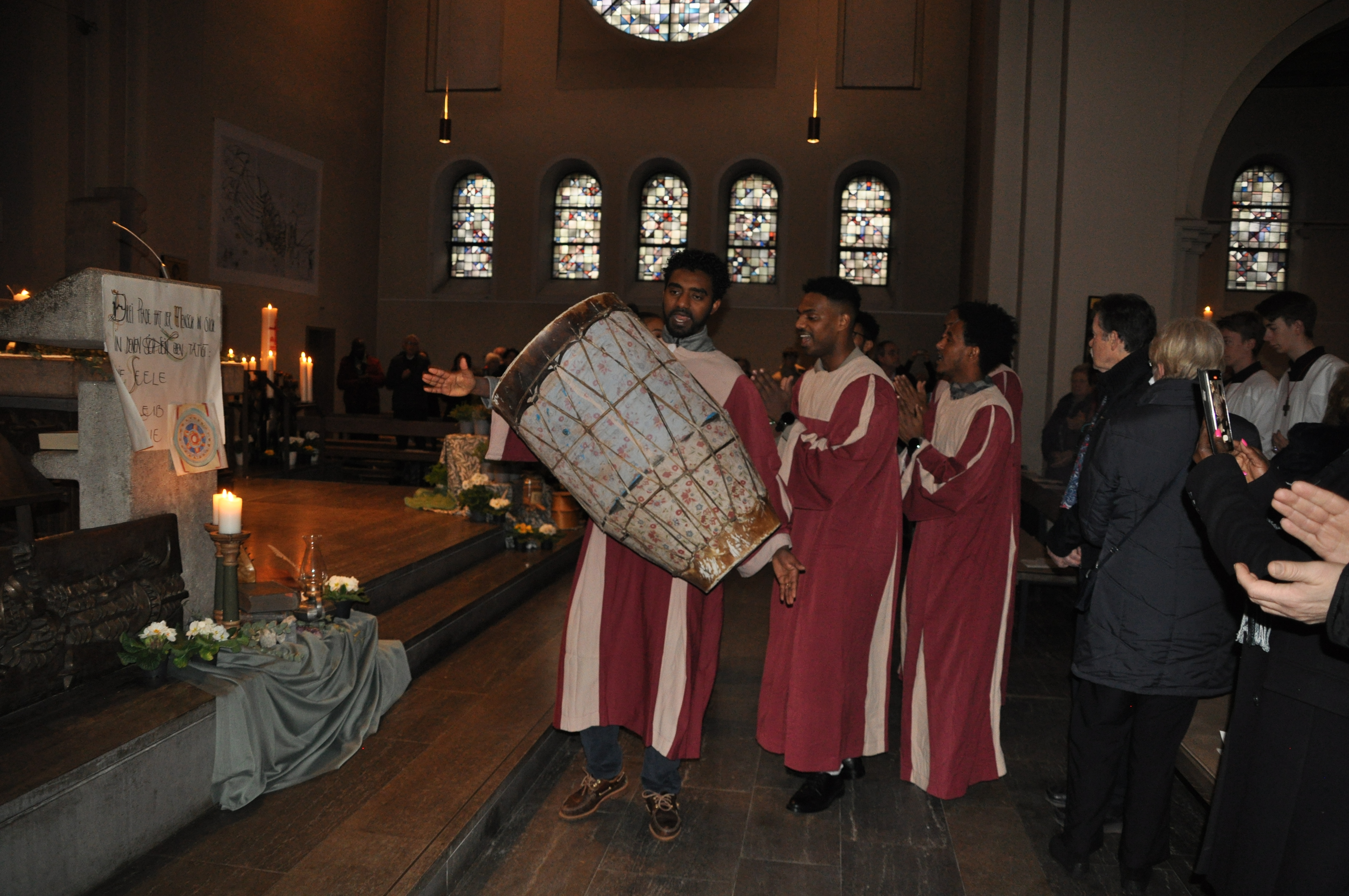 Um diese Vielfalt zu verdeutlichen, wurden die Fürbitten in sechs verschiedenen Sprachen vorgetragen. Und zumindest musikalisch ist die Fusion der sieben Kirchorte und vielen verschiedenen Gruppen schon einmal geglückt: Der Chor der eritreischen Gemeinde eröffnete den gut zweistündigen Gottesdienst mit einem wunderbar schwungvollen Trommel-Einzug, Organist Markus Meurer spielte und später sangen gemeinsam die Kantorei St. Markus, der Kirchenchor Mariä Himmelfahrt und der Kirchenchor St. Pius.