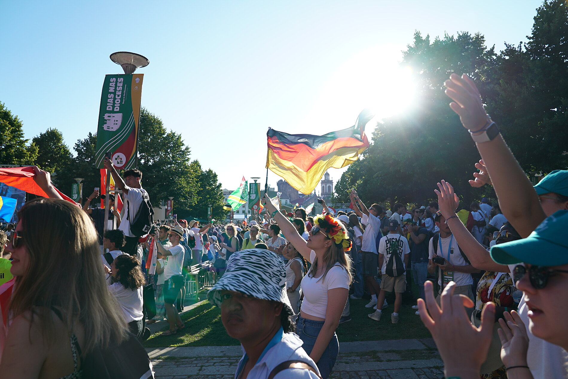 Seit Mittwoch, 26. Juli, ist eine Gruppe von insgesamt 124 Jugendlichen und jungen Erwachsenen in Portugal unterwegs. Dort findet in diesem Jahr der Weltjugendtag statt. Die ersten fünf Tage verbrachte die Gruppe in Amares in der Erzdiözese Braga. Die „Tage der Begegnung“ standen im Zeichen der Gastfreundschaft, Gemeinschaft und Kultur. Gemeinsam feierten die Jugendlichen Gottesdienste, besuchten Sehenswürdigkeiten und feierten das Zusammensein.