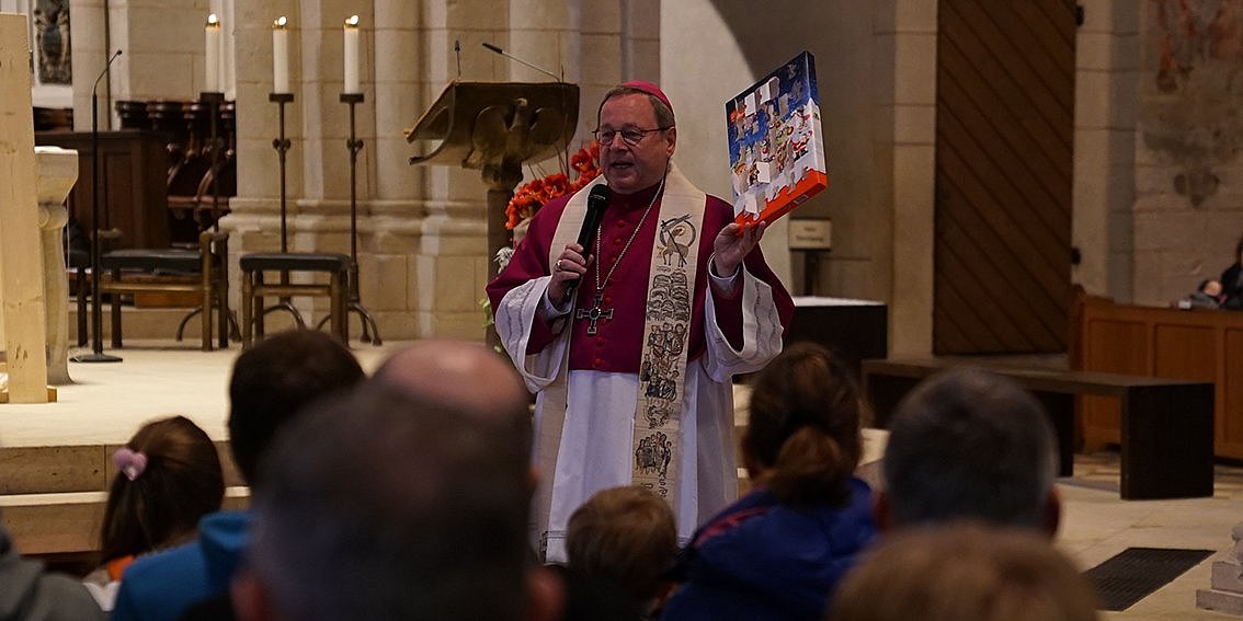 „Es gibt nicht nur Türen aus Holz, es gibt nicht nur Türen aus Papier“, sagte der Bischof. „Ich glaube auch unser Herz hat Türen. Man kann die Türen des Herzens aufmachen, man kann die Türen des Herzens auch zuschlagen.“ So könne man entscheiden, ob Jesus im Herzen Platz habe oder nicht. „Im Evangelium hat Jesus gesagt: ‚Ich bin die Tür. Wer durch mich geht, der hat ein gutes Leben.’ Das heißt, wenn wir in unserem Herzen die Tür aufmachen und sagen: Jesus, komm herein, dann verspricht Jesus, er ist immer da“, sagte Bätzing zu den Kindern und Familien.