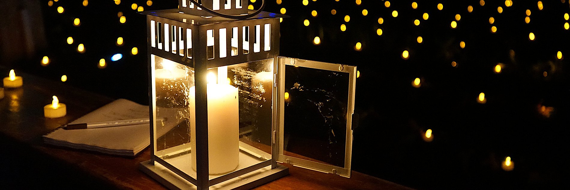 Am dritten Advent verwandelte sich das Gartenlabyrinth in Kriftel nach Einbruch der Dunkelheit in einen spirituellen, magischen Ort. 1300 kleine Lichter wiesen die Richtung durch die verschlungenen Pfade. Dazu gab es Kopfhörer mit musikalischen und geistlichen Impulsen – sowohl für Erwachsene als auch für Kinder, denn das Angebot des Gartenlabyrinths richtet sich ausdrücklich an die ganze Familie. In der Mitte flackerte in drei Laternen das Friedenslicht, das am gleichen Nachmittag von den Pfadfinderinnen und Pfadfindern in Aarbergen ins Bistum ausgesandt worden war und seinen Weg direkt in das Gartenlabyrinth gefunden hatte. Viele nahmen sich die kleine Flamme mit nach Hause, so wie Regionalleiterin Barbara Lecht, die extra eine Laterne mitgebracht hatte.