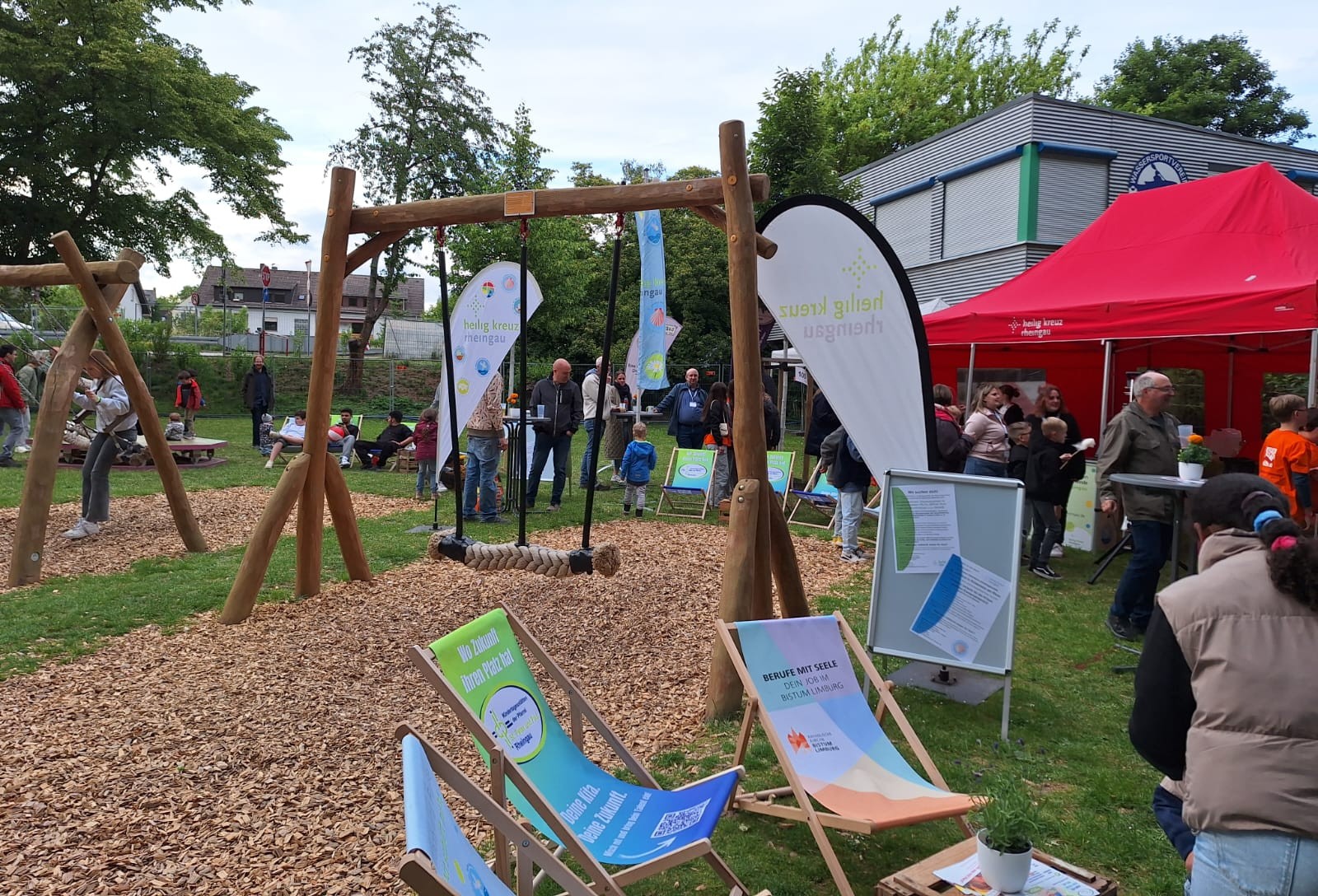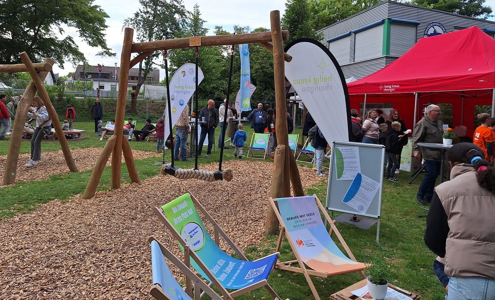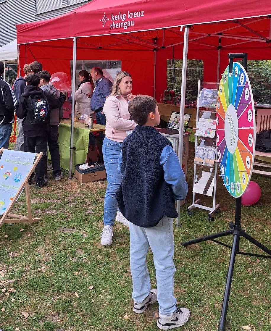 Gleich daneben zeigten auch die Kitas der beiden Rheingau-Pfarreien Heilig Kreuz und St. Peter und Paul mit einem Angebot für die ganze Familie Gesicht. Die Zuckerwatte erfreute sich großer Beliebtheit und am Glücksrad wartete eine lange Schlange – kein Wunder: Jeden Abend gegen 20 Uhr wurden attraktive Gewinne verlost, so beispielweise Gutscheine für eine Geisenheimer Eisdiele. Die Liegestühle des Stands „Berufe der Kirche“ luden zum gemütlichen Verweilen ein.