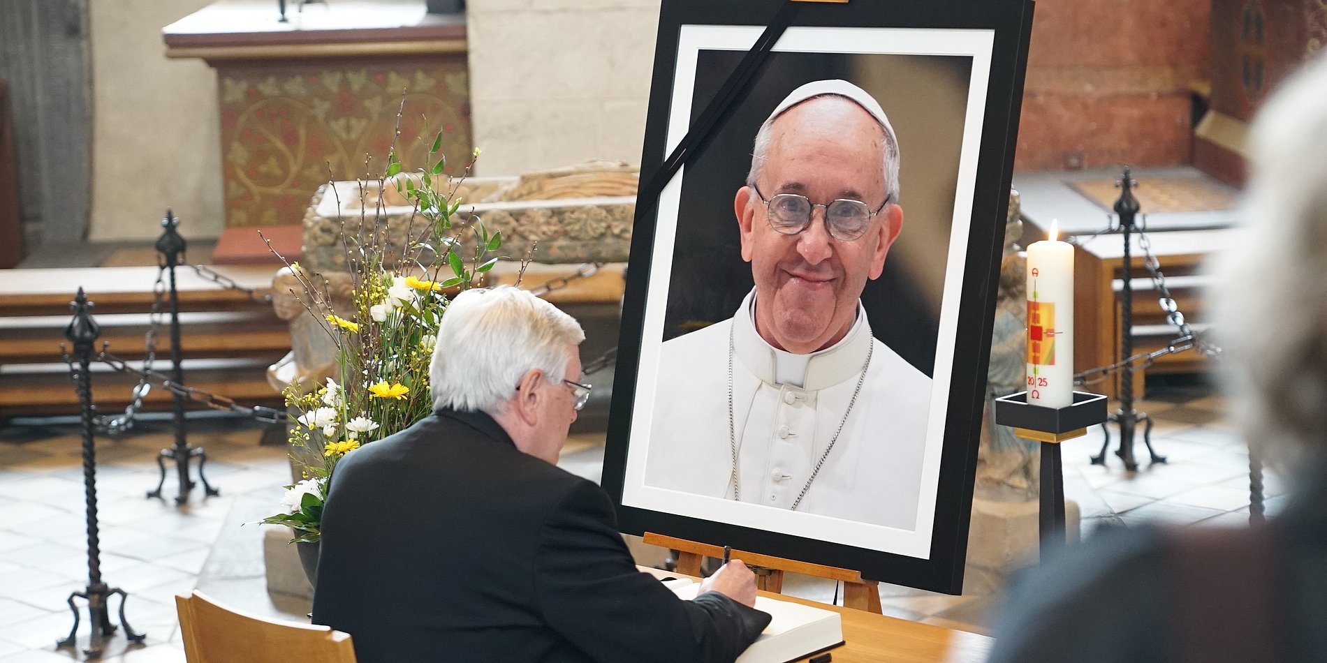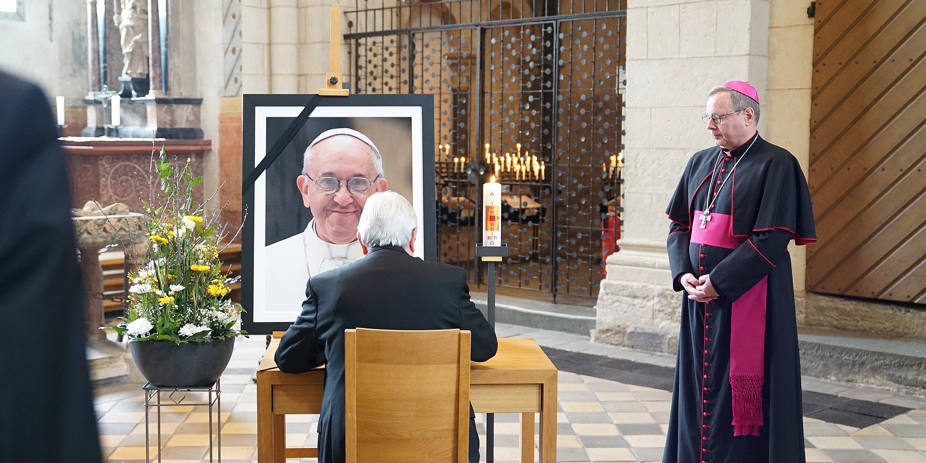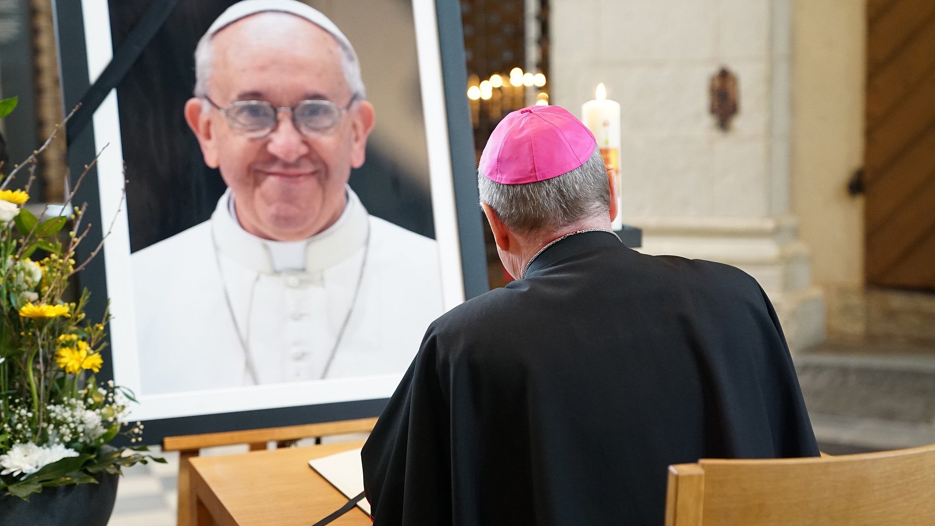 Zum Gedenken an Papst Franziskus werden am Ostermontag, um 18 Uhr, alle Kirchenglocken in der Diözese zehn Minuten lang erklingen. Die Fahnen werden auf halbmast gesetzt. In allen Heiligen Messen wird in den kommenden Tagen des verstorbenen Papstes gedacht. Zudem liegt bis zum Requiem für Papst Franziskus in Rom im Limburger Dom ein Kondolenzbuch aus. Ein offizieller Gedenkgottesdienst wird zeitnah bekannt gegeben. Bereits am Ostermontag, um 17 Uhr, fand im Limburger Dom ein Totengebet statt.