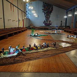 Den Besuchern bietet sich ein komplett veränderter Kircheninnenraum, der ihnen neue und vielfältige Zugänge zu verschiedenen Themen ermöglicht.